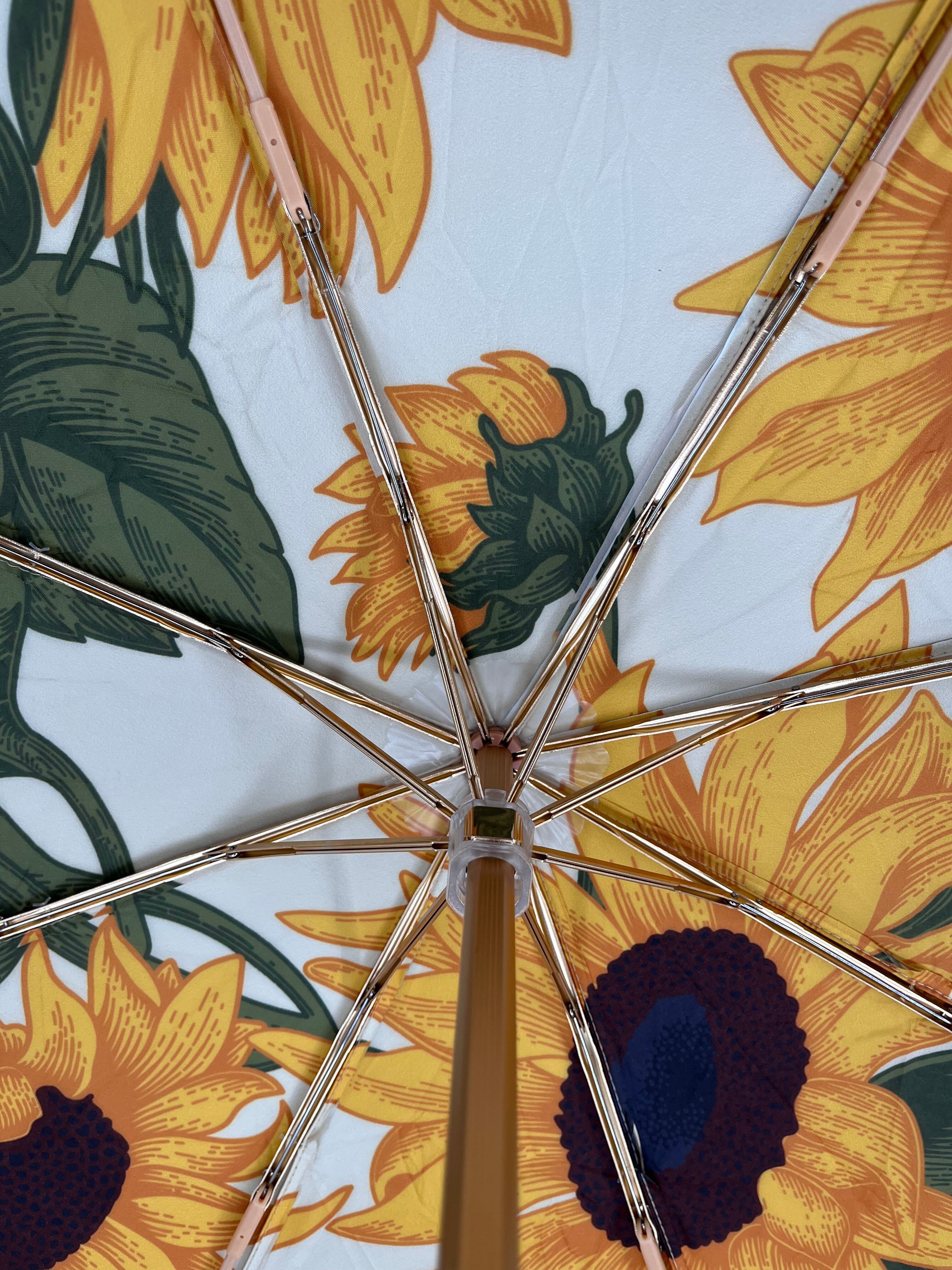 ○内側一面のひまわりが元気をくれるデザインの三つ折り傘です。