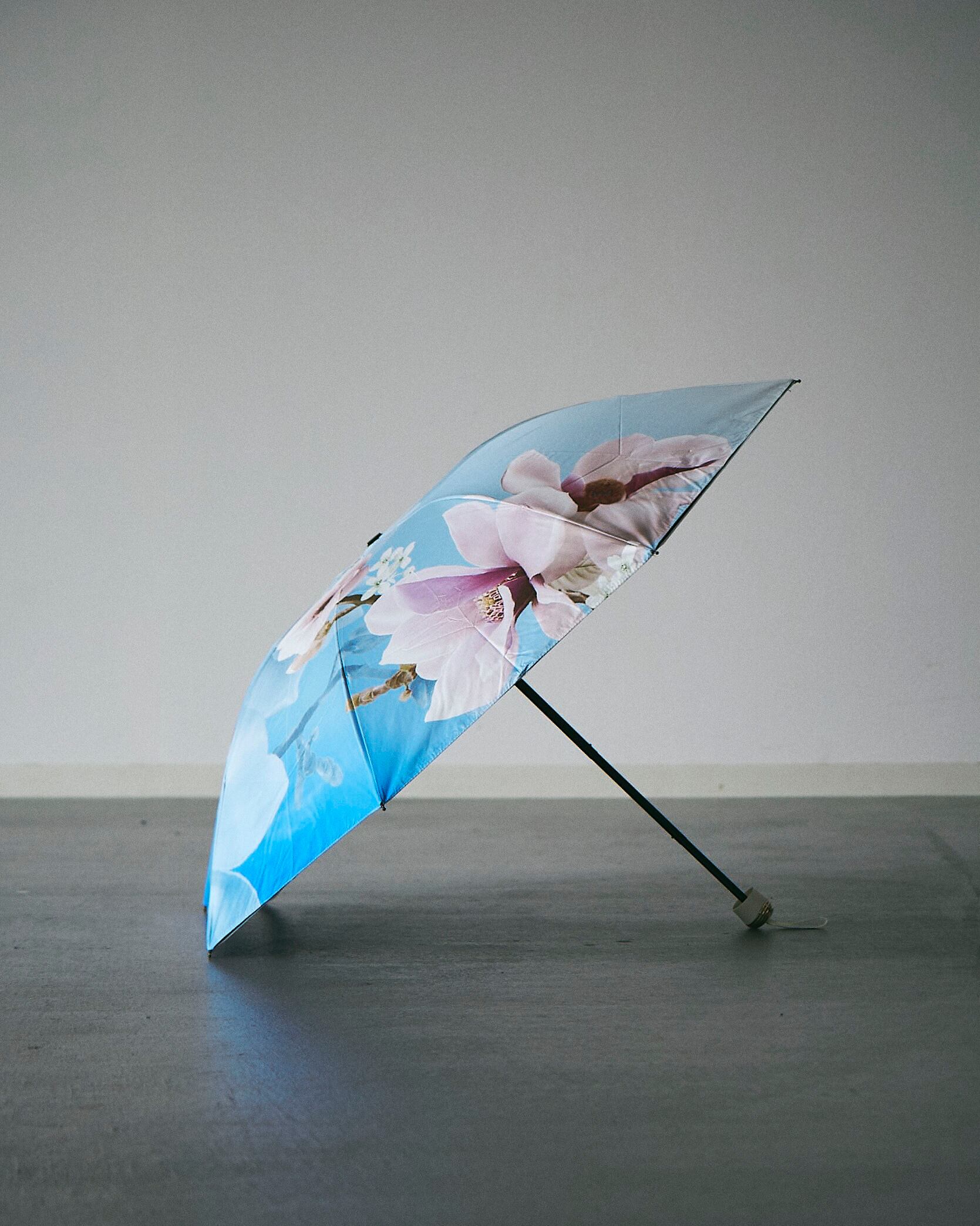 ○モクレンの花を大きくあしらったデザインの三つ折り傘です。